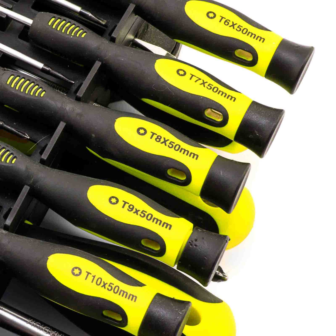 Distinctive Design: Featuring a striking black and acid yellow color scheme, the screwdrivers not only add a pop of personality to your toolkit but also ensure easy visibility, minimizing the risk of misplacement or loss.