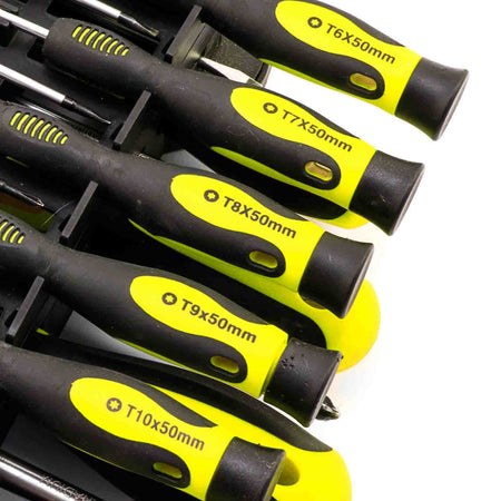 Introducing the Black and Acid Yellow Screwdriver Set in Organizer Box, the ultimate companion for DIY enthusiasts, professionals, and hobbyists alike. This premium set combines functionality, style, and convenience to revolutionize your toolkit and elevate your projects to new heights. With a sleek black and vibrant acid yellow color scheme, this set not only stands out in any workshop but also ensures you always have the right tool at your fingertips.